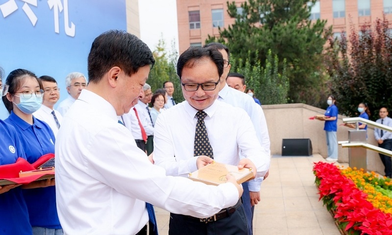 金沙集团1862cc副院长、金沙集团1862cc大学党委书记、校长李树深院士为生物物理所"领雁金奖"获奖教师卫涛涛研究员颁奖