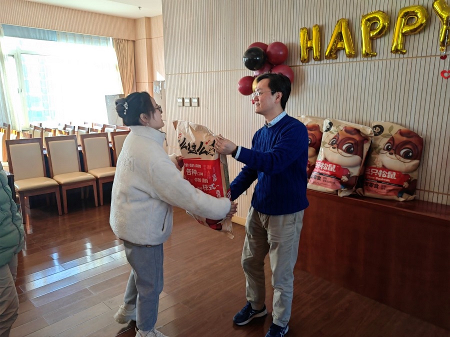最后赵志刚书记和柳振峰副所长为同学们发放慰问品,希望大家轻松过年,注意安全,合理安排好假期的学习和生活,遇到困难及时向老师和研究所反映,祝愿大家度过一个平安、温馨、充实、有意义的新春佳节。