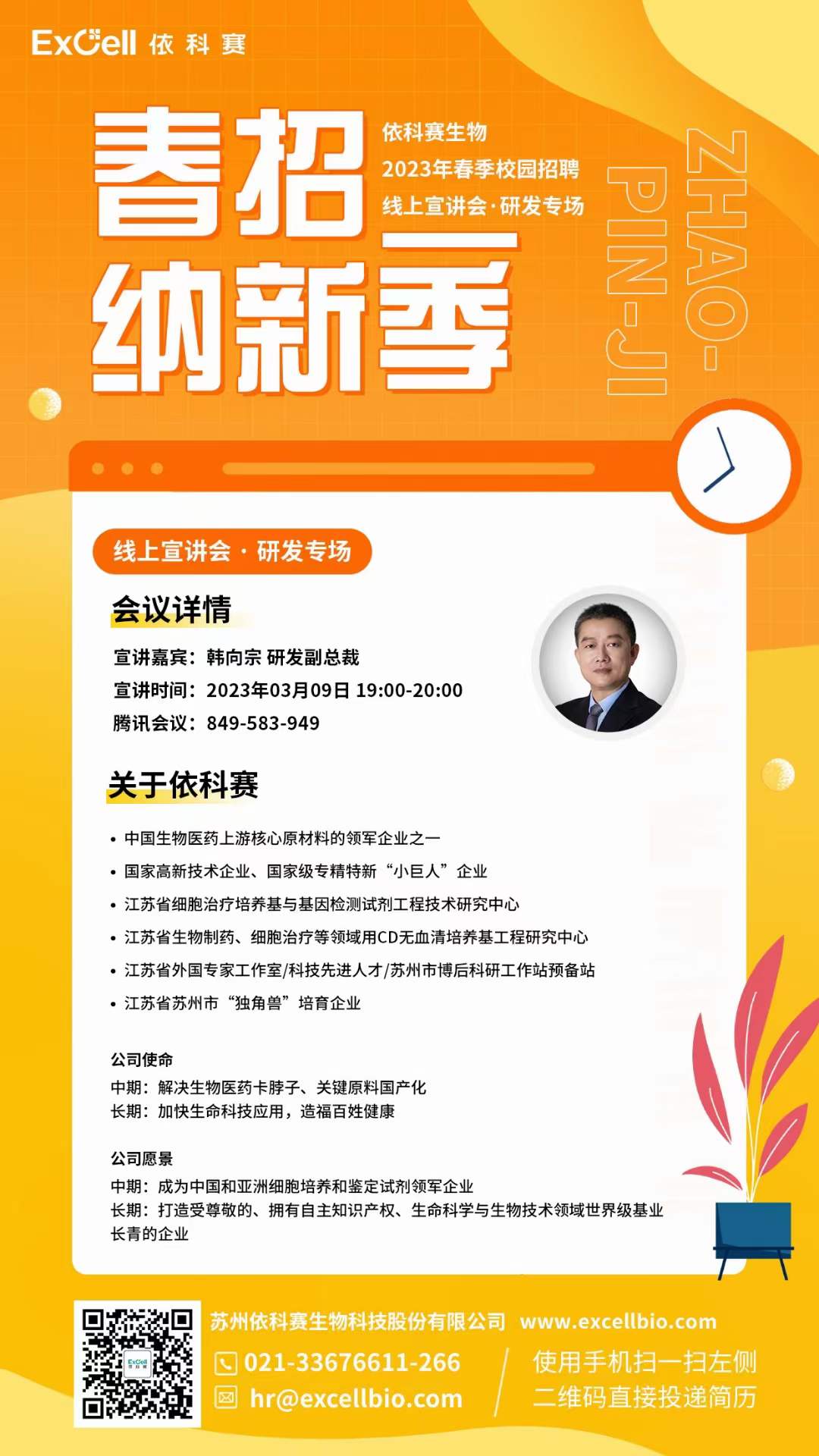 依科赛生物2023年春季校园招聘线上宣讲会-研发专场