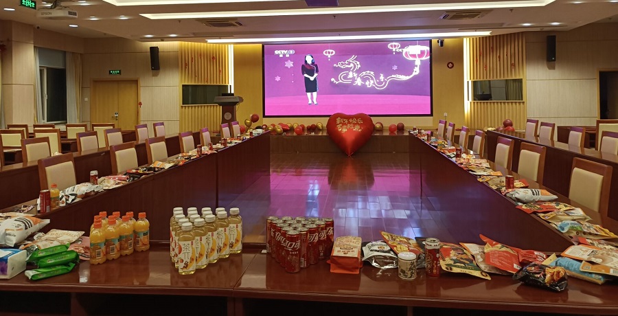 为迎接除夕之夜的到来,腊月二十八,教育处全体老师和志愿者同学们精心布置了9501会议室,会场呈现出一派喜气洋洋的节日氛围。除夕夜,看春晚是每个家庭必不可少的一项活动,当晚留所学生齐聚9501会议室,一同观看龙年春晚。嗑瓜子、吃零食、聊天……同学们汇聚一堂,同欢共乐,一起度过美好的除夕夜。