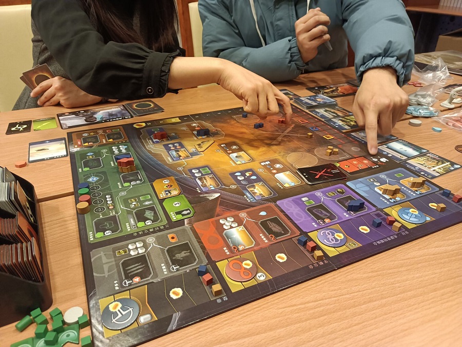 为增添更多欢乐,会议室同步设置了桌游区,钟楼谜团、一夜狼人、犯人跳舞、机密暗号、作弊飞蛾.......同学们依据自己的喜好选择游戏,在刺激和欢笑中迎来龙年的第一声钟响。