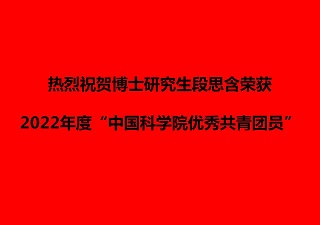 热烈祝贺博士研究生段思含荣获2022年度“金沙集团1862cc优秀共青团员”