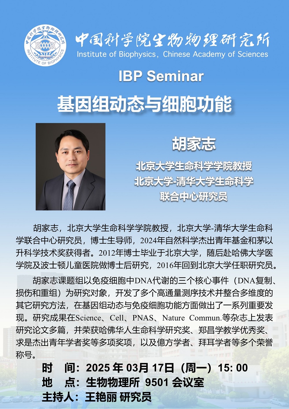 2025年3月17日下午15:00 IBP Seminar:基因组动态与细胞功能