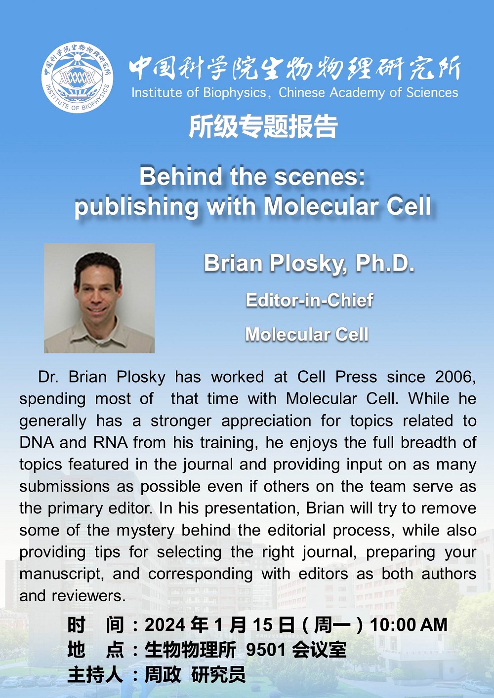 2024年1月15日上午10:00 所级专题报告:Behind the scenes: publishing with Molecular Cell
