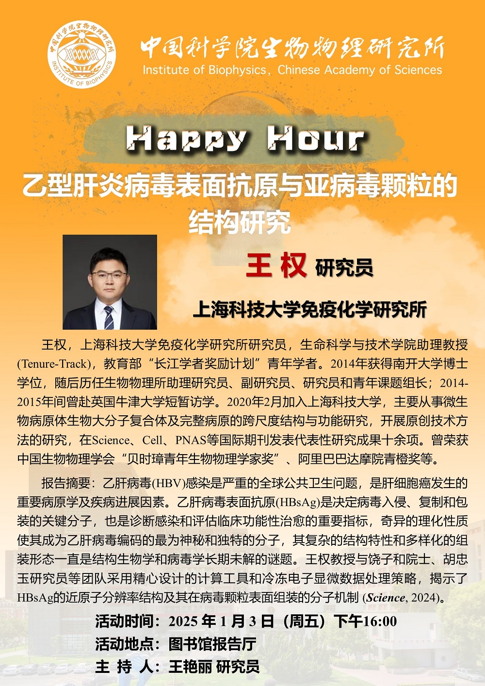 2025年1月3日下午16:00 Happy Hour:乙型肝炎病毒表面抗原与亚病毒颗粒的结构研究