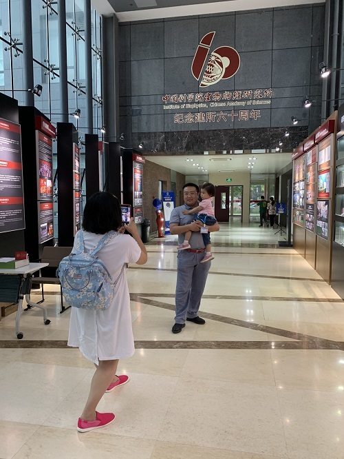 在研究所建所60周年主题历史图片展前,聆听志愿者讲述研究所发展史,了解生物物理所60年来在“两弹一星”、“载人航天”等国家重大战略任务的辉煌成就和近年来取得的前沿成果,无不为研究所秉持的“为生命科学努力奋斗”的精神所打动,纷纷合影留念。