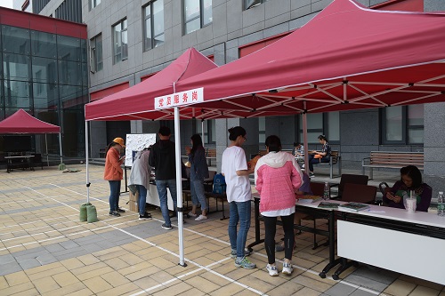 图为北京第十一中学学生在“公众科学日”接待处排队登记