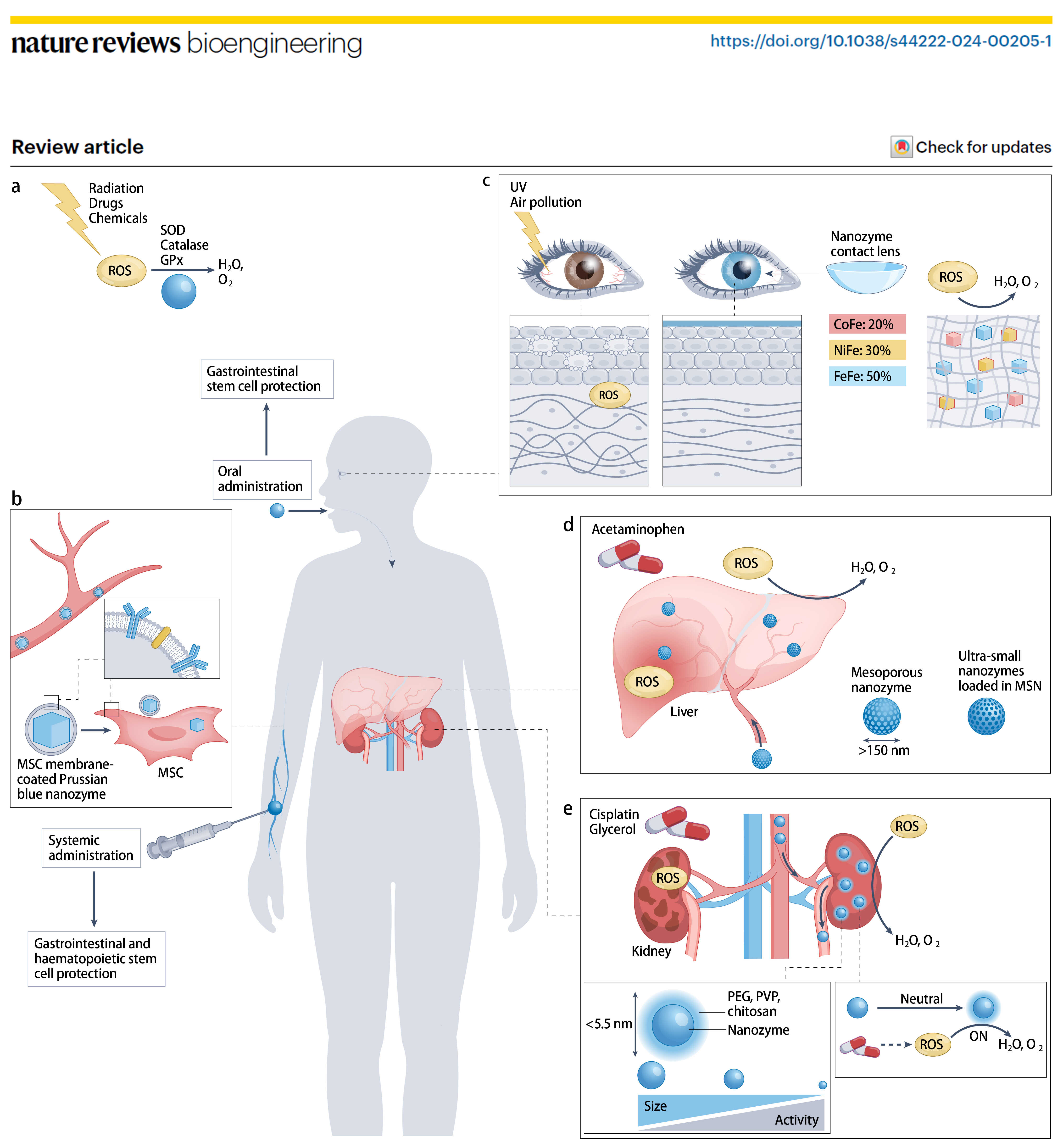近日,阎锡蕴院士团队应邀在《Nature Reviews Bioengineering》杂志上发表了题为"Designing nanozymes for in vivo applications"的综述文章,该文全面梳理了纳米酶催化医学的代表性研究进展...