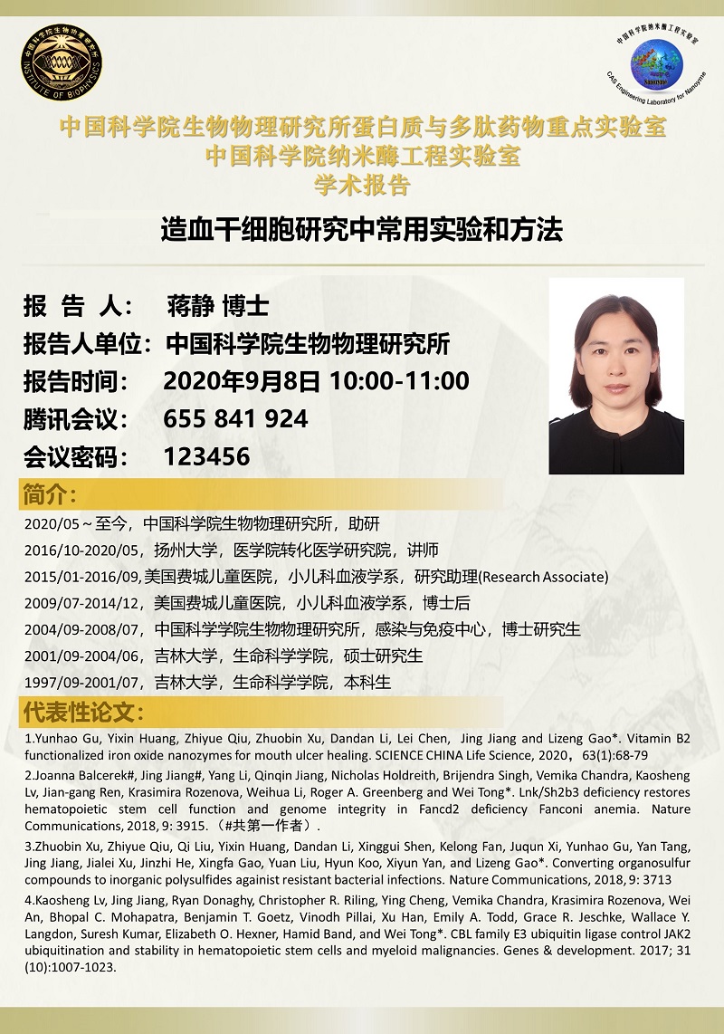 2020年9月8日学术报告:造血干细胞研究中常用实验和方法