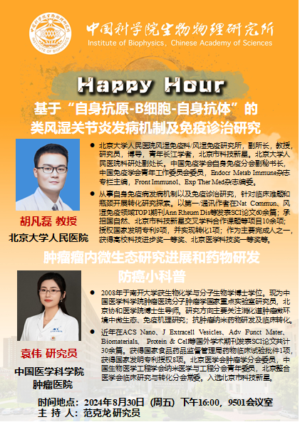 2024年8月30日学术报告:北京大学人民医院胡凡磊教授和中国医学科学院肿瘤医院袁伟研究员做客生物物理所