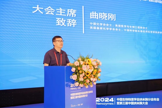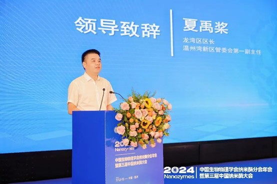 中国生物物理学会纳米酶分会会长曲晓刚教授,温州市龙湾区区长、温州湾新区管委会第一副主任夏禹桨致开幕辞。