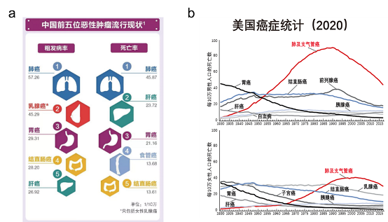(图片来源:a. 阿斯利康医学部;b. 美国癌症学会《Cancer Facts & Figures 2020》统计)