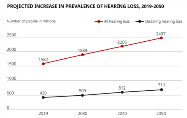 听力损失将会影响越来越多的人 (图源自World report on hearing, 2021)