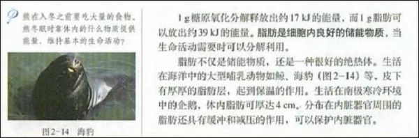 人教版高中生物必修一上对脂肪功能的描述|人民教育出版社