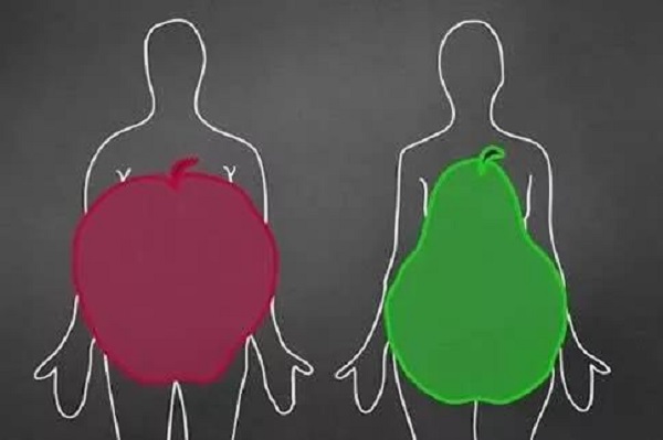 同样是长胖,你可能注意到部分人群(特别是男性),脂肪容易沉积在腹腔,肚子大而四肢较纤细,整体身形呈现苹果型,而部分人(大多数绝经前女性)脂肪更倾向于沉积在皮下,堆积在臀部和大腿,整体身材呈现梨形,有研究表明这与雌激素和雄性激素的分泌有关【6】。