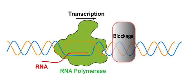 转录过程中,RNAP沿模板链的行进路途并非一帆风顺,基因组DNA总是不可避免的遭受内外环境带来的损伤。转录模板链上的DNA损伤,如单链断裂、双链断裂等会阻碍RNAP在模板链上的正常前行【1】。