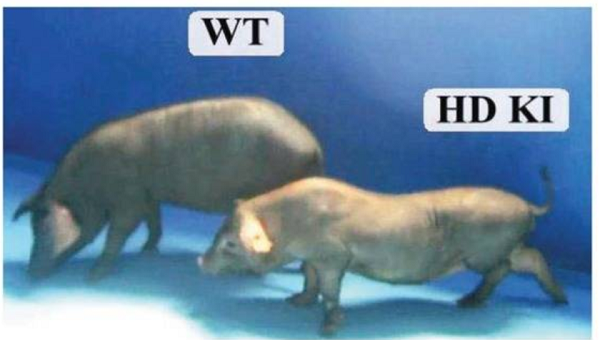在人类疾病模型建立上,猪确实可以实现小鼠上实现不了的事。在脑生命科学研究中,由于小鼠脑的结构比较简单,难以模拟人脑相关疾病,而猪脑与人脑的结构更为相似,有类似的脑回结构,更适合作为脑生命科学的动物模型。如人类亨廷顿舞蹈症是由于HTT基因1号外显子CAG重复导致蛋白质错误折叠和聚集,患者往往出现精神障碍、痴呆、动作不受控制,在基因修饰猪上出现了与人体类似的神经退行性特征【4】,然而在亨廷顿小鼠模型上没有明显的症状【5】。