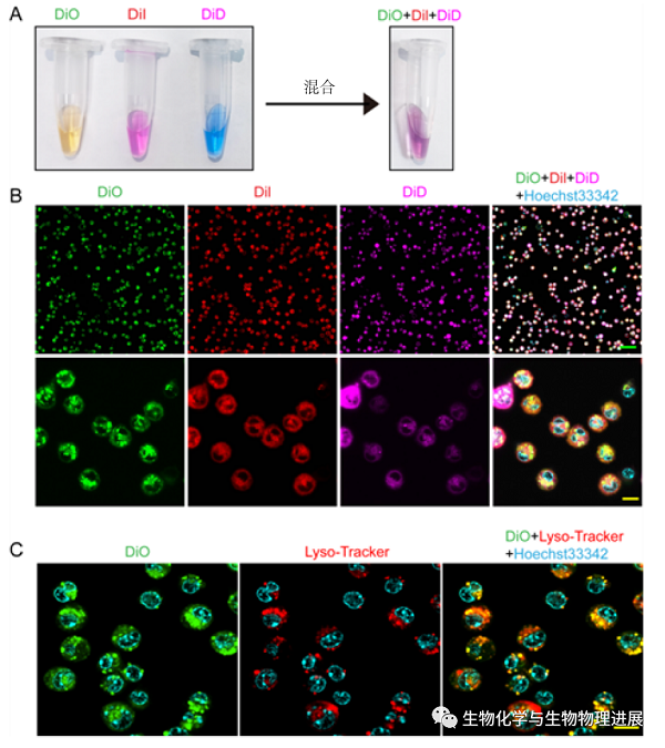 图1 亲脂性染料DiO,DiI和DiD可快速标记腹腔巨噬细胞