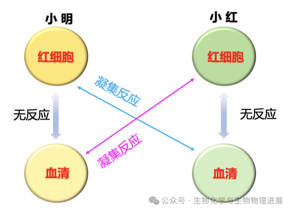 在发现血型前,人类走过了一段曲折的道路。一开始,人类以为红色的血液都是一样的,甚至认为人和动物的血可以通用。颇具探索精神的法国医生试图将绵羊的血输给病人,这是人类历史上有文字记载的第一次输血,结果当然没有成功,病人死亡了。直到奥地利的科学家,被称为血型之父的卡尔-兰德斯坦纳(Karl Landsteiner)发现"小明"的红细胞(红细胞)/血清和"小红"的血清/红细胞可以发生团聚(图1),且这种凝集存在固定的规律。1900年,他提出ABC血型系统,也就是我们现在ABO血型的前身。这一发现,改写了输血历史,在1930年Landsteiner获得了诺贝尔医学或者生理学奖。