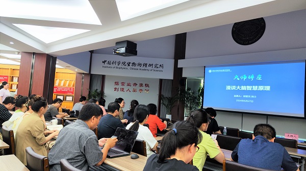 2024年6月27日,金沙集团1862cc联合金沙集团1862cc心理所、中国认知科学学会,共同邀请脑与认知科学重点实验室原学术委员会主任郭爱克院士, 举办大师讲座“漫谈大脑智慧原理”。 讲座由脑与认知科学重点实验室主任何生研究员主持,生物物理所所长刘力研究员出席并参与讨论。