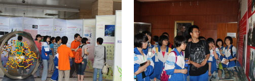 在图书馆报告厅,孙飞研究员、张鹏副研究员分别作了题目为 “认识生物大分子”、“模式生物果蝇在疾病研究中的应用”的科普讲座。孙飞研究员利用三维动画电影等新媒体手段立体、形象、细致浅出地为同学们介绍了什么是生物大分子。张鹏在报告中融入生活和现代流行元素,图文并茂地为公众们介绍了果蝇模式动物在科研中的重要作用。两个精彩报告使公众在故事性和趣味性的讲座中深入认识了生命科学。