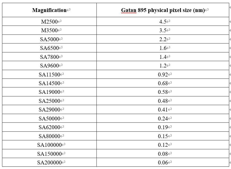 4. 底插式Gatan Ultrascan 894 CCD相机,点阵尺寸2048x2048, 象素点大小15um。