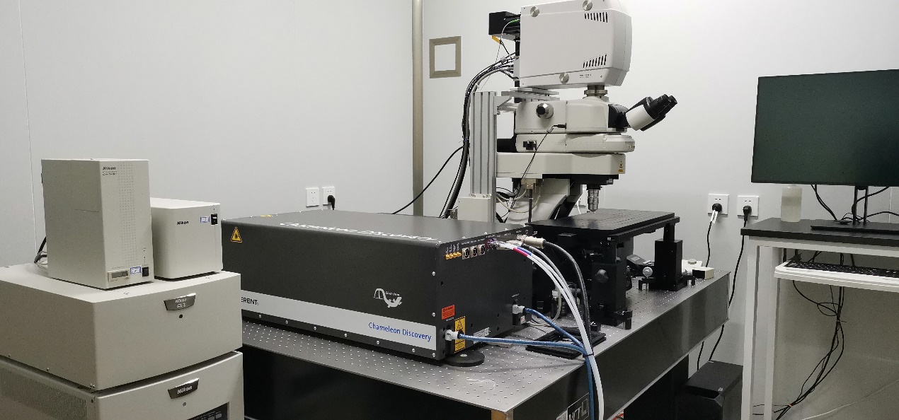 1. 双光子光源: 双飞秒红外脉冲激光器, 具有双波长同时输出(主可调输出为680 - 1300 nm/1.4W @ 800 nm,辅助固定输出为1040 nm /1.5W)