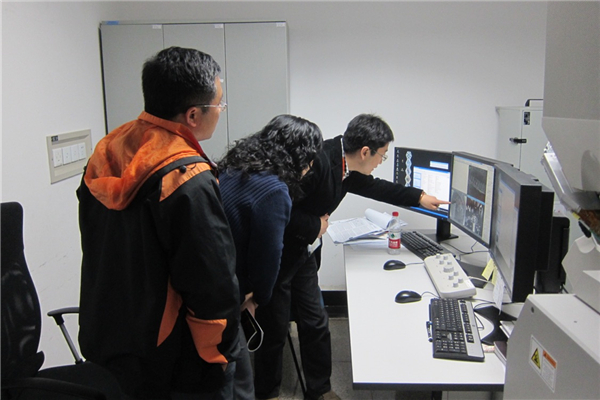 报告结束后,梁凤霞老师应孙飞研究员邀请,与丁明孝老师、徐伟老师以及朱平研究员一起参观了科学研究平台生物成像中心,并与中心负责电镜运行管理与样品制备的相关老师、从事电镜相关研究项目的研究生同学们进行了深入的沟通交流。梁老师具备丰富的电镜样品制备经验,耐心而又细心,对于大家提到的在实验过程中遇到的难题,梁老师都一一进行了详细的分析、解答与深入讨论,诲人不倦,令参会的所内外师生受益匪浅。