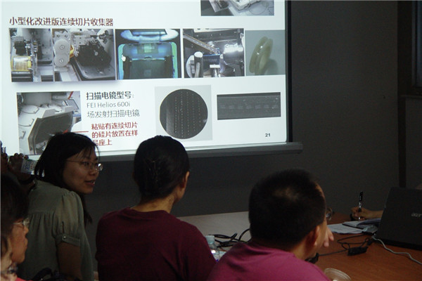 报告结束后,与会人员进行了热烈讨论,几位研究员最后总结指出,该项研究课题中样品制备是关键环节,而扫描成像和图像处理因工作量巨大,是实验瓶颈。但是建立线虫完整三维重构数据库的研究价值是重大的,这将是一个非常有意义的研究挑战。