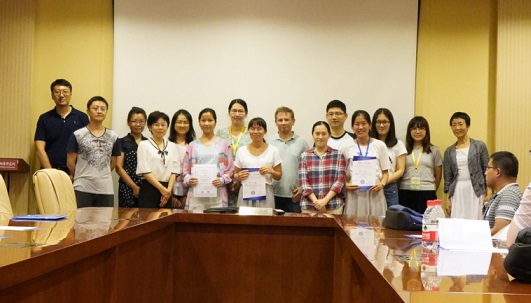 本次培训形式为第一天全天专家报告,第二天至第五天上、下午上机实习,晚间讨论答疑。在7月2日的报告会上,来自伦敦国王学院的Roland Fleck教授、徕卡公司技术专家Julia K?nig、Thermo Fisher公司技术专家于洋、中科院自动化所韩华研究员、中科院计算所张法研究员以及我所生物成像中心孙飞研究员、季刚正高级工程师、孙磊高级工程师、黄小俊高级工程师、张建国高级工程师、李喜霞高级工程师就高压冷冻、冷冻替代、冷冻离子减薄、冷冻断裂复型、自动化连续切片、扫描电镜数据收集、透射电镜数据收集以及电子断层数据处理等做了主题报告。大会报告吸引了所内外百余位老师学生参加,会场气氛热烈,报告内容精彩纷呈,提问环节听众也十分踊跃,纷纷发言。