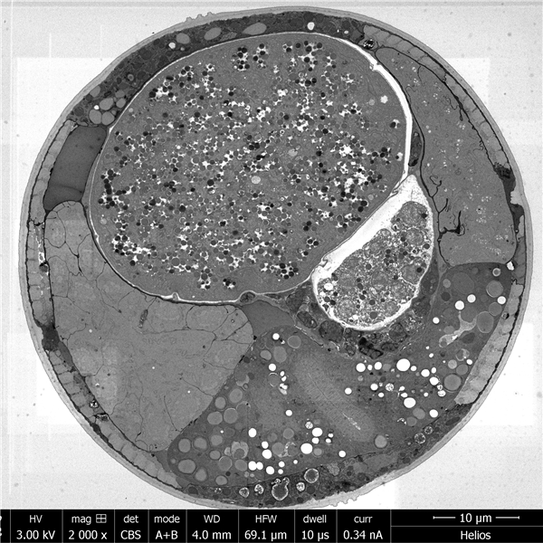 Courtesy of Xixia Li, Jianguo Zhang, Gang Ji, CBI, IBP, CAS, China Image Details: Instrument used: FEI Helios Nanolab 600i ,Leica EM UC6 Accelerating voltage: 3 kV; Magnification: 2000x ; Current: 0.34 nA