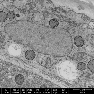小鼠肝脏细胞内线粒体的扫描电镜成像