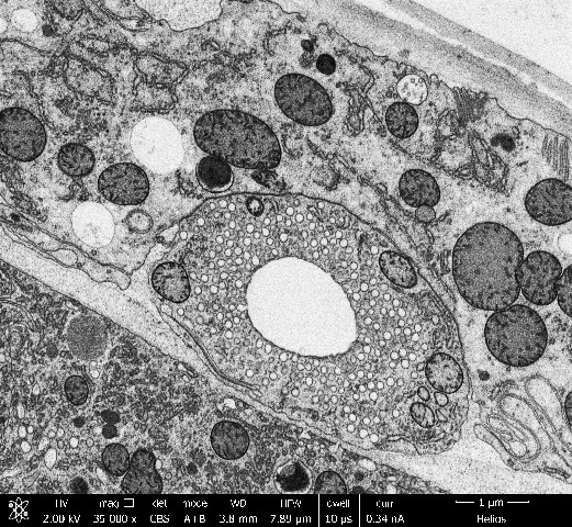 作品说明:野生型秀丽隐杆线虫经HPF/FS制样,线虫的Excretory cannal。