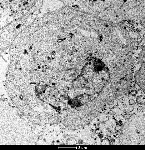 作品说明:病毒感染的BHK细胞,细胞核变形成类似一个胚胎。