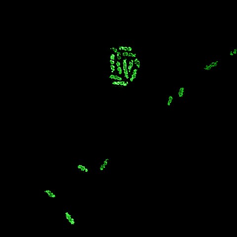 作品说明:超分辨荧光显微镜下拍摄到的大肠杆菌骨架定位蛋白,中间有几颗菌体构成了一朵玫瑰花似的图案,附近的菌体分布又像是散落的花瓣,整幅图呈现一种落英缤纷的即视感。