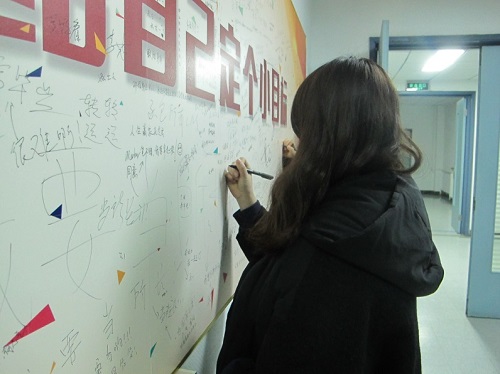 这是一块属于所有人的展板,满满的都是IBPer们的心里话。希望在科研上有所突破的同学写下“实验顺利,发paper”;即将考博的同学留言“考博顺利 X 3”;爱好健身的同学立下“练出马甲线”的豪言。还有很多幽默风趣的IBPer,在留言板上写下“我要当所长!”“睡好”“帮师姐脱单”,看似玩笑的心愿其实是热忱赤诚的青年对2019最无畏的宣言。