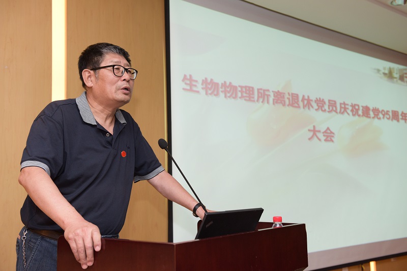 7月6日上午,生物物理研究所召开离退休党员庆祝建党95周年大会。党委书记汪洪岩应邀出席大会并做了《学习中央精神,从严管理,推动制度建设》的报告,离退休党总支副书记王海龙同志主持。