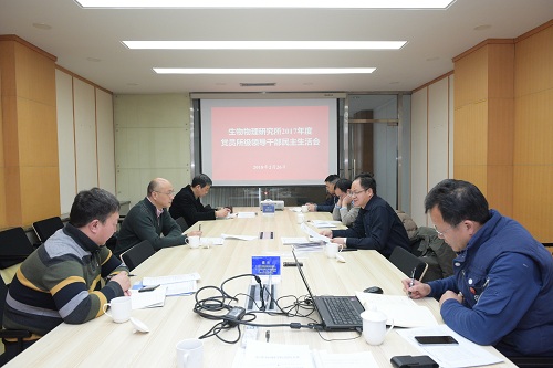 2018年2月26日下午,生物物理所召开2017年度党员所级领导干部民主生活会。研究所领导班子全体成员参加会议,北京分院干部人事处徐兵到会指导。会议由研究所党委书记汪洪岩主持。