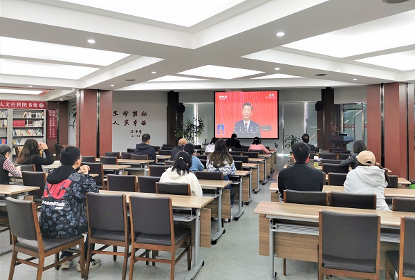 10月16日上午10时,中国共产党第二十次全国代表大会在北京人民大会堂隆重召开。生物物理所组织研究所全体党员在线收看二十大开幕会,图书馆报告厅设置直播会场,党委书记刘力、党群工作部主任栾贵波、部分党员代表在直播会场集中观看。
