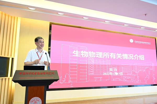 党委书记刘力作了生物物理所工作情况的报告。重点介绍了研究所科研规划及进展、人事人才管理工作和党的建设工作有关情况。上海营养健康所党委书记瞿荣辉、副所长胡国宏、纪委书记曹永、副所长汪思佳等领导先后发言,就生命科学领域研究规划工作、科研组织模式、人事管理、基层党建创新等进行了深入沟通。会上,有关部门负责人应询对相关日常工作进行了交流和情况介绍。