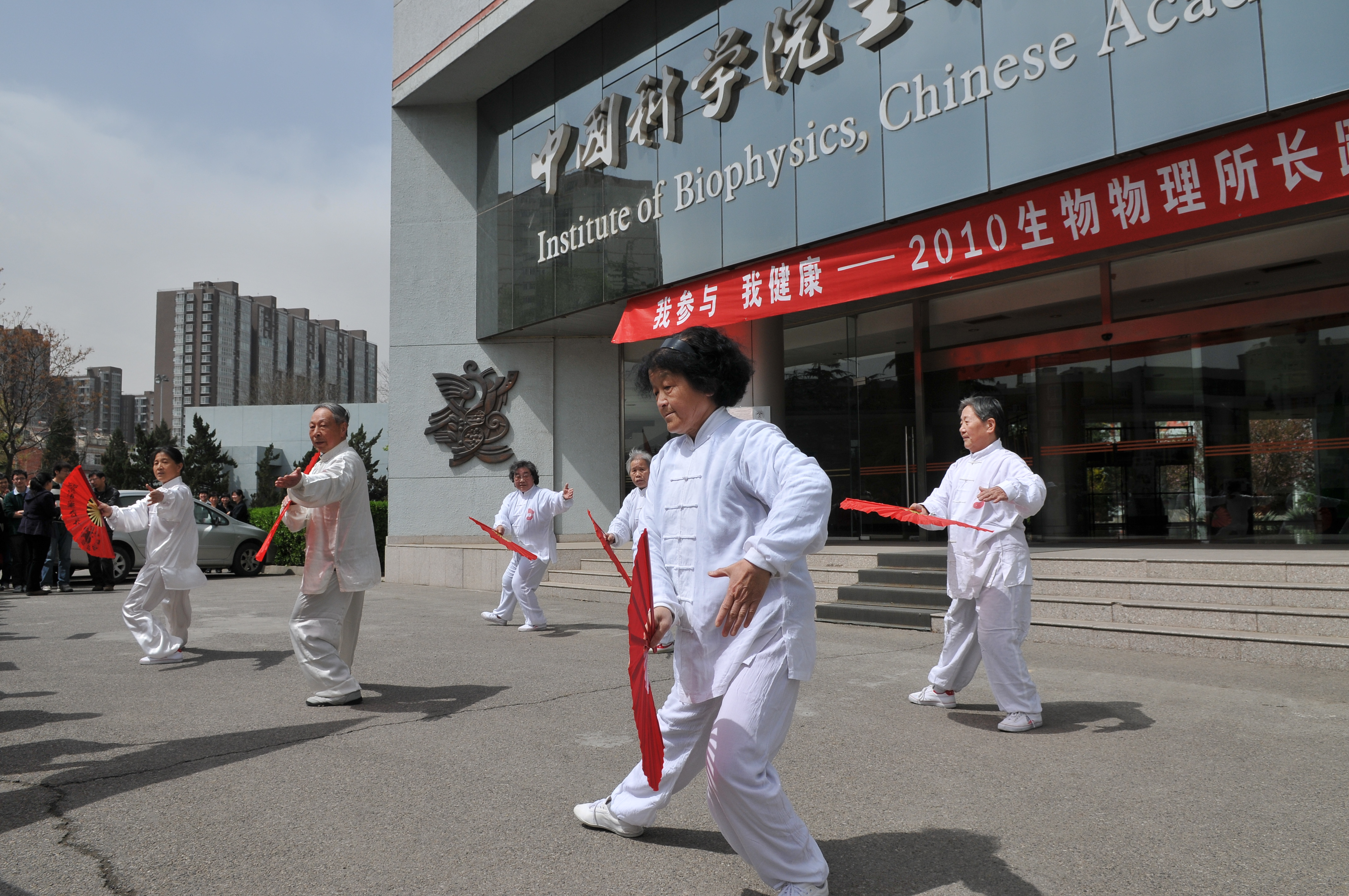 生物物理所武术协会的部分成员,在长跑活动启动仪式上进行了精彩的太极拳表演,赢得了大家阵阵热烈的掌声。