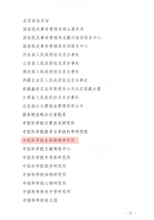 经中央国家机关精神文明建设协调领导小组办公室(简称“文明办”)2013年度对原272家精神文明单位的检查审核,继续授予249家单位“中央国家机关文明单位”称号,生物物理研究所再次获此殊荣。这是继2004年至2009年,生物物理所连续六年被命名为中央国家机关精神文明单位,2011年复审合格以来,对生物物理研究所精神文明创建活动的又一次肯定。