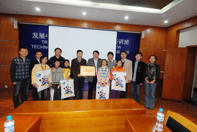 生物物理所党委副书记龚为民首先代表研究所欢迎“未来科技之星”小客人的到来,并介绍了生物物理所脑成像中心开展的为灾后重建所做的工作。微电子所叶甜春所长代表院青联再次向小学的师生们致以亲切的慰问,回顾了院青联与希望小学在灾后重建过程中的共同奋斗历程。叶所长回忆说,院青联委员多为各研究所的领导,平时大家难得聚在一起讨论问题,但是地震以后关于青年北川希望小学的安危及其重建工作却使大家自发的“聚”在了一起,大家积极努力帮助落实小学的重建工作。“希望小学”的王刚法副校长代表学校再次感谢中科院各级领导及院青联、院团委同志们的关心,并代表“希望小学”300多名师生献上“六十春秋铸就辉煌、情系羌乡”匾牌作为向中科院建院60周年的生日贺礼,并介绍了小学灾后重建取得的成绩和遇到问题与困难。叶甜春同志强调说,中科院团委、青联会将一如既往地积极帮助协调有关方面,时刻关注希望小学,进一步开展定向资助活动,让孩子们能有更好的发展。