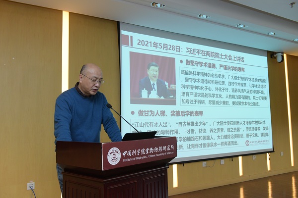 2021年12月31日下午,生物物理所组织召开2021年第四季度警示教育大会。所长许瑞明作专题讲话,党委书记刘力、纪委书记杨兴宪作专题廉政报告,大会由刘力主持。