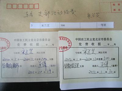 中国农工民主党生物物理所支部党员、退休干部宋兰芝同志,在2011年农工党北京市委成立60周年之际,撰写了纪念文章《中科院生物物理所支部成长的历程》,被评选为一等奖。宋兰芝同志在经济不宽裕的情况下,主动把获得的500元奖金全部以党费形式上缴支部,以表达个人对支部发展的关心和支持。