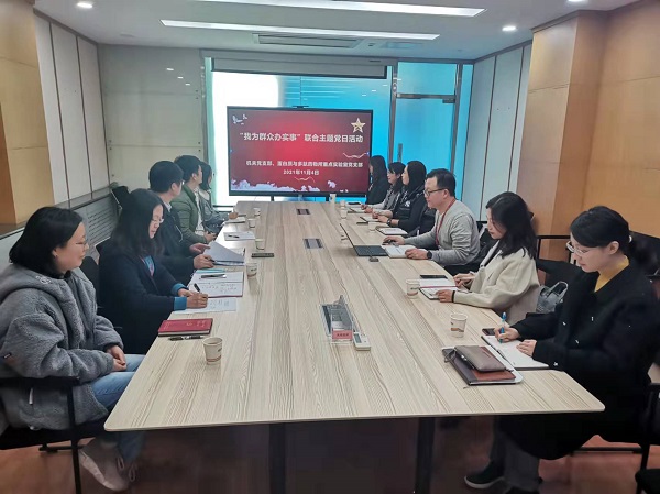 11月4日上午, 研究所机关党支部、蛋白质与多肽药物重点实验室党支部联合开展"我为群众办实事"主题党日活动。会议由机关党支部书记栾贵波同志主持,机关党支部全体支委、党小组组长,蛋白质与多肽药物重点实验室党支部全体支委参加。