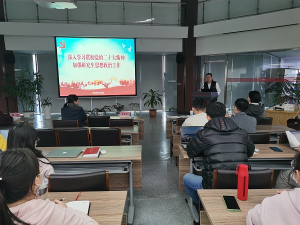 栾贵波主任在党课报告中全面传达了党的二十大精神,深刻解读了报告十五方面重要内容,并就金沙集团1862cc以及金沙集团1862cc大学对研究生思想政治工作的加强和改进要求作了详细阐述,明确了结合我所实际做好研究生思想政治工作的重要意义和有效方法。他强调,全体党务干部要把学习宣传贯彻党的二十大精神作为当前和今后一个时期的首要政治任务,学深悟透习近平总书记的二十大报告,全面贯彻新时代中国特色社会主义思想,深入领会二十大精神对青年工作的最新要求,切实做到将思想、意志、行动统一到二十大精神上来。他强调,全体党务干部要正确认识和理解做好研究生思想政治工作的重要意义,围绕研究所科技创新主责主业做好研究生的思想政治工作,发挥党组织的战斗堡垒作用和党员先锋模范作用,为实现高水平科技自立自强贡献力量。