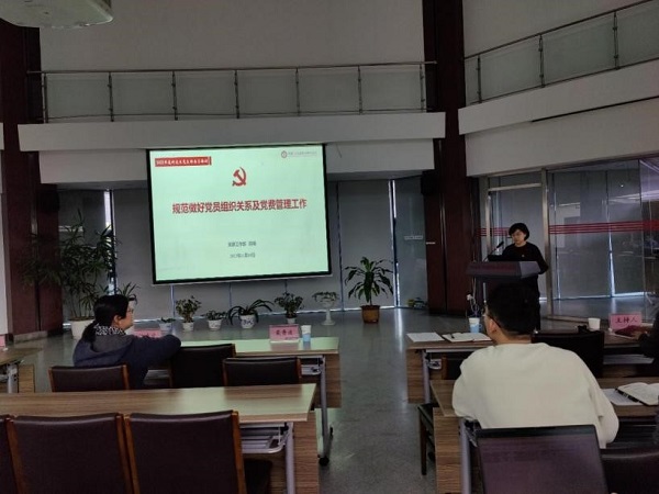 党务主管周畅就如何做好党员组织关系管理工作及党费管理工作展开了详细透彻讲解,介绍了党员组织关系及党费管理的规章制度依据,解释了在党员组织管理过程中易于混淆的概念,要求各位委员在工作的过程中要态度严谨,有理有据,规范做好相关管理工作。