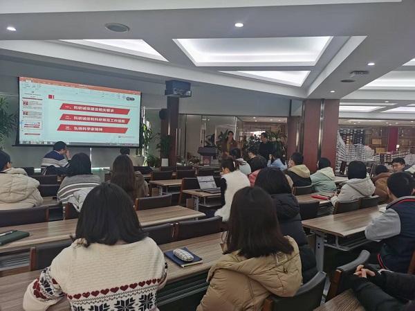 2024年12月9日上午,表观遗传调控与干预重点实验室第一党支部开展党课主题报告会。纪委书记舒春英同志受邀作题为"加强科研诚信建设 涵养优良作风学风"的主题党课报告。报告会由支部书记李伟研究员主持,表观第一在职和研究生党支部全体党员50余人参加报告会。