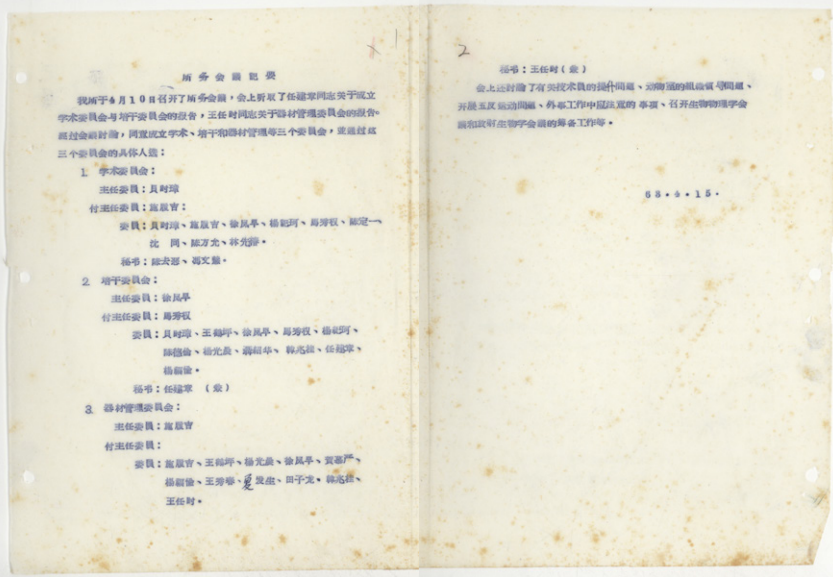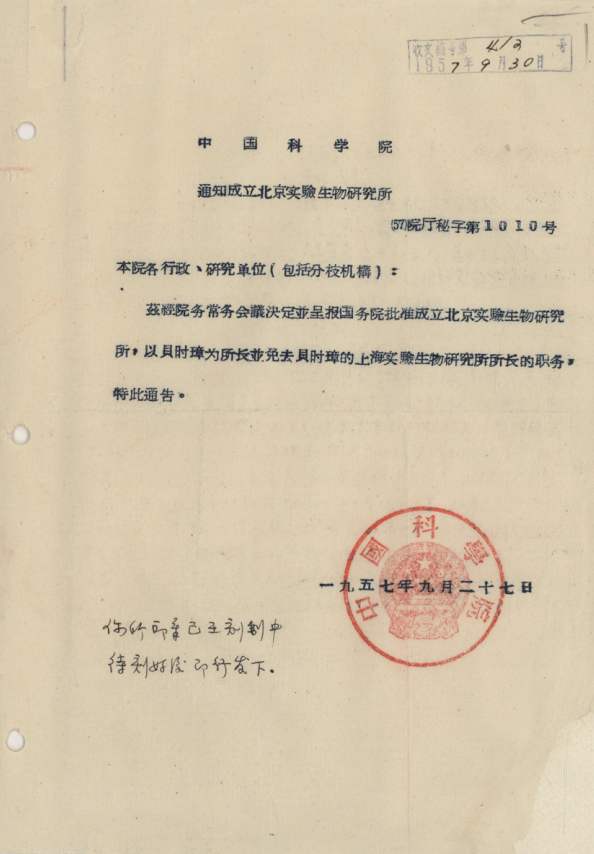 2月27日,生物物理所调整管理和支撑部门,设综合处、党群工作部、科学技术处、人事处、教育处、资产财务处6个管理部门和学术支撑部。
